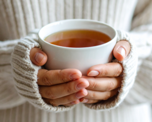 - カフェインレスの温かい飲み物で体をあたためる