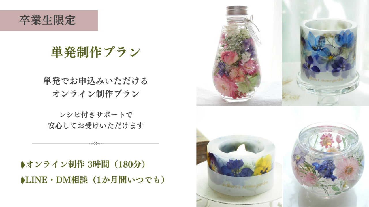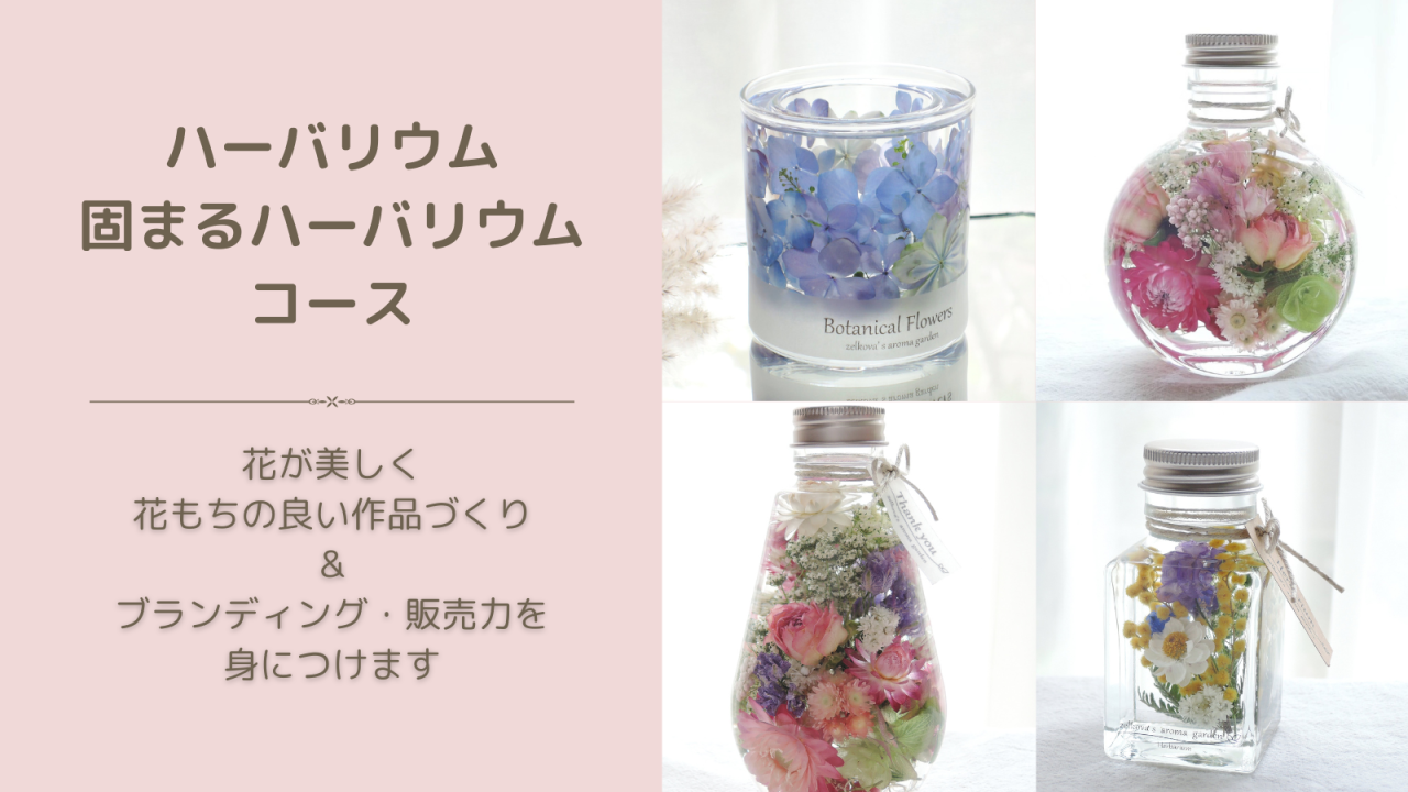 ハーバリウム・固まるハーバリウムコース 目安:オンラインレッスン1回2.5時間×4回(DMサポート付き)