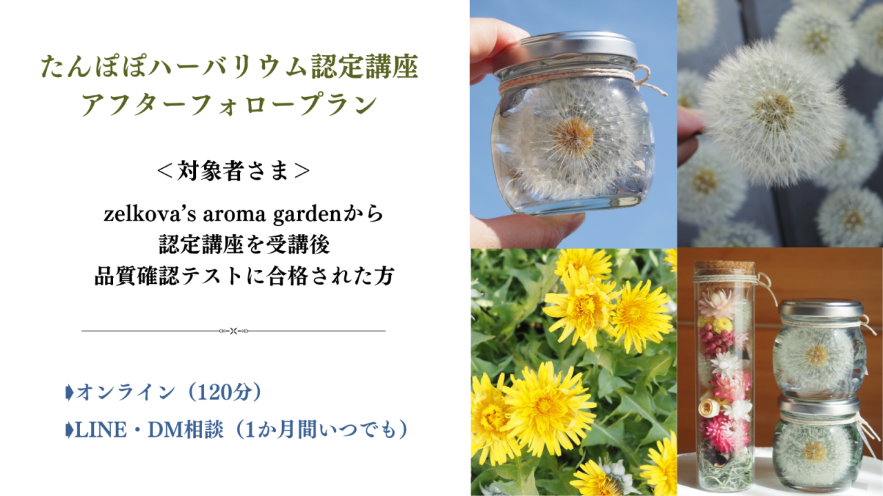 たんぽぽハーバリウム認定講座 受講者様アフタフォロー専用プラン