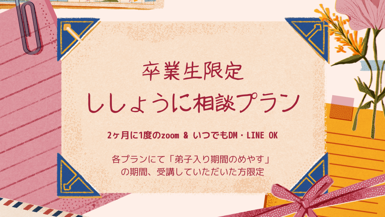 【卒業生限定】ししょうになんでも相談プラン(2ヶ月に1回zoom+LINEサポート)