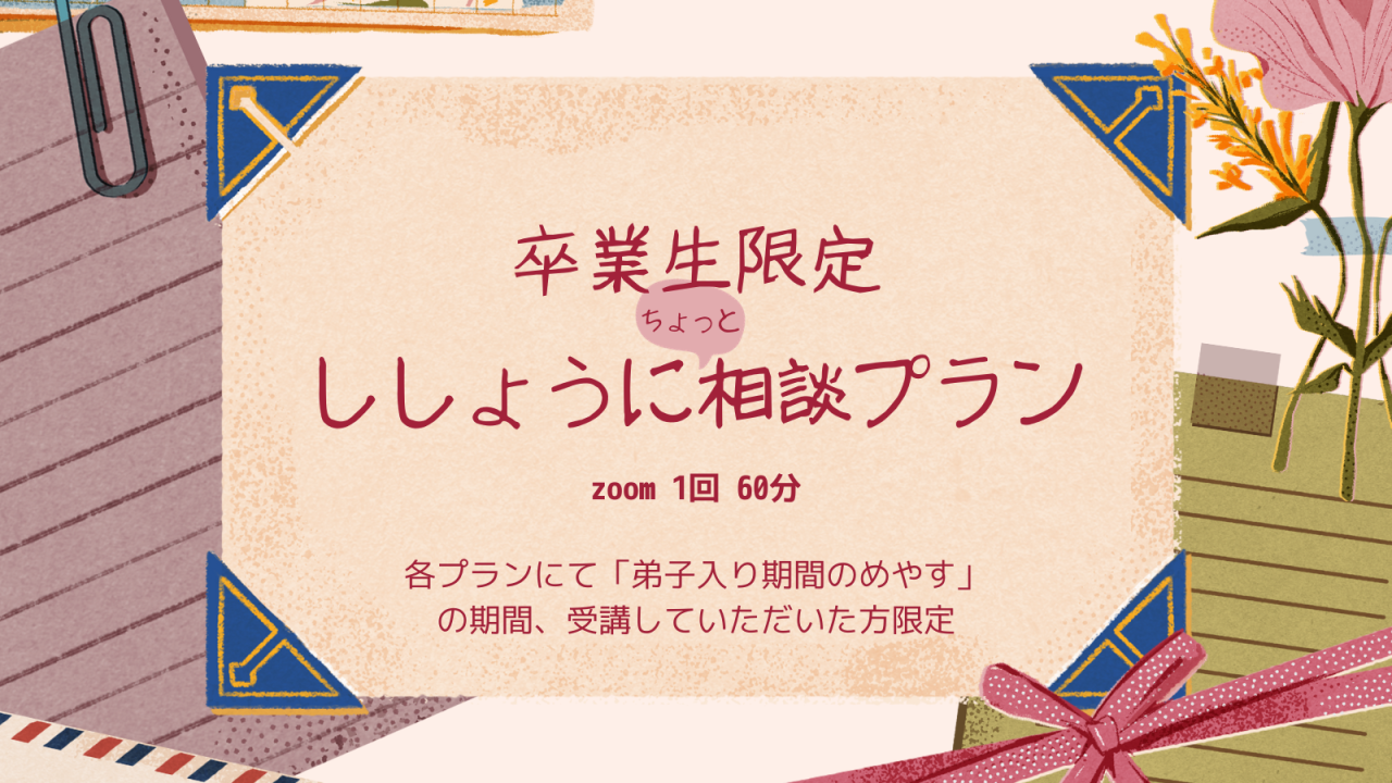 【卒業生限定】ししょうになんでも相談プラン(zoom 60分)